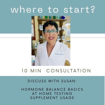 Not sure where to begin? Susan Merenstein, Pharmacist/Owner/Hormone Expert is offering a 10 minute consultations to discuss testing, healthy lifestyle habits, and basics of hormone balance. If you are ready to begin simply click here. Take advantage of Susan’s 25+ years of hormone balancing experience.
